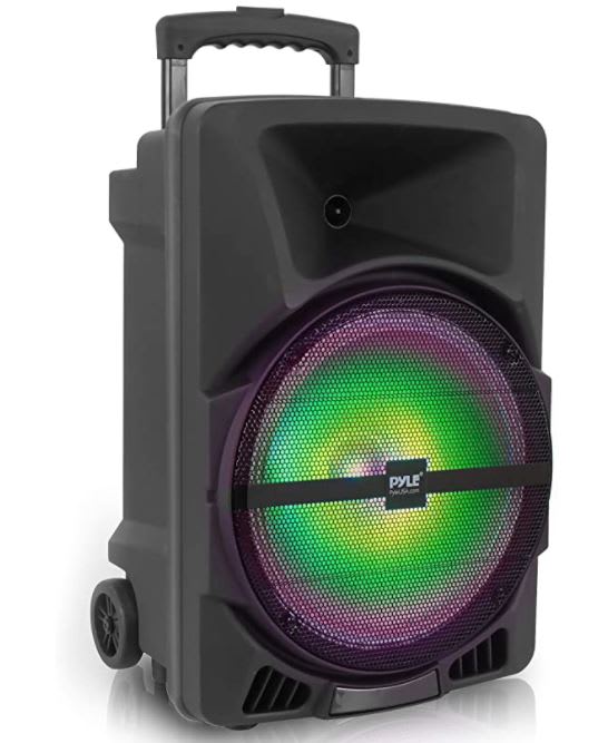 This speaker can be paired with a microphone and used for karaoke night, presentations, meeting or turn it up and watch the lights move to the pulse of the beat while you channel your inner DJ.