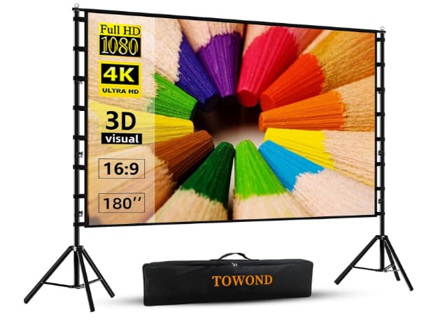 Don't want to go to the theater? No problem... We'll turn your event location or backyard into your very own cinema. This Jumbo Projection Screen makes a great addition to any indoor/outdoor movie night that you are having. The white Projection Screen Size is 15 feet with an aspect ratio of 16:9. Bring your family and friends together for a night full of fun in your backyard great for tailgates and camping adventures.