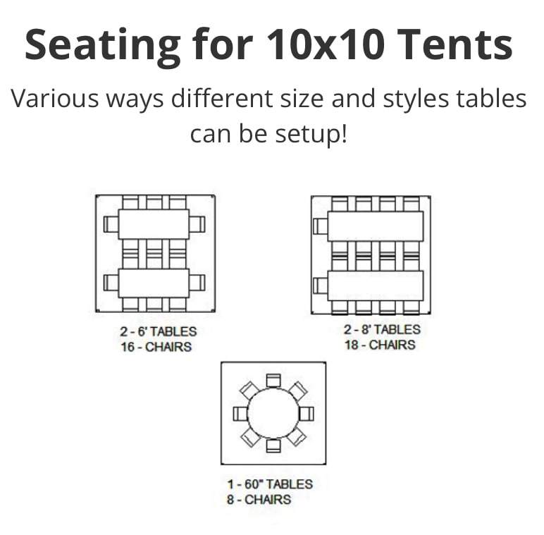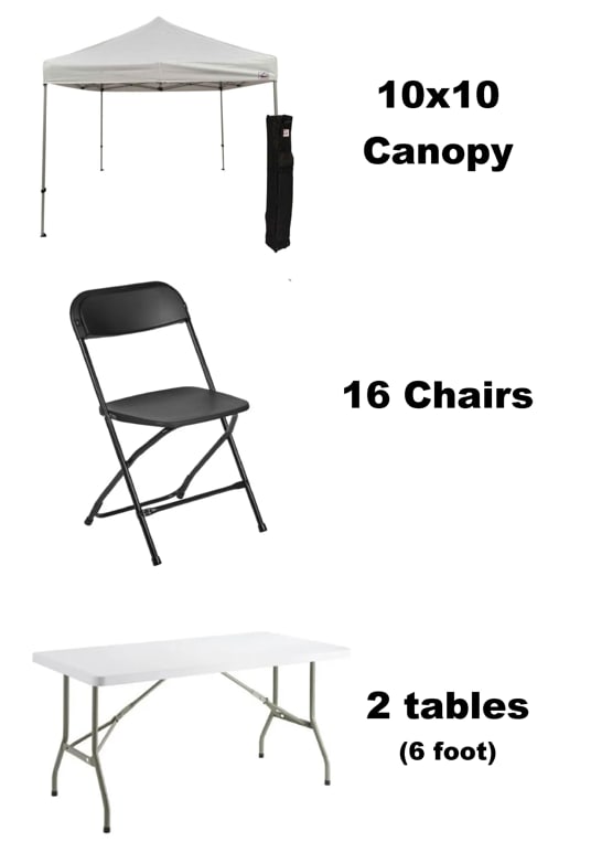 This package includes enough shade and seating for a small sized function.